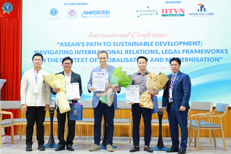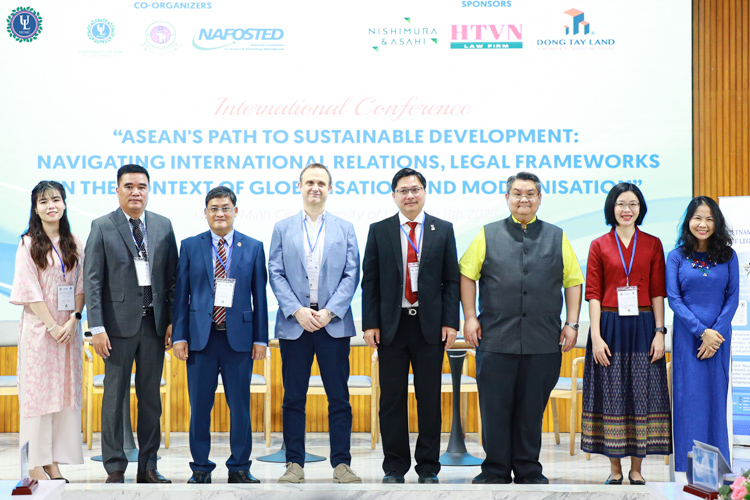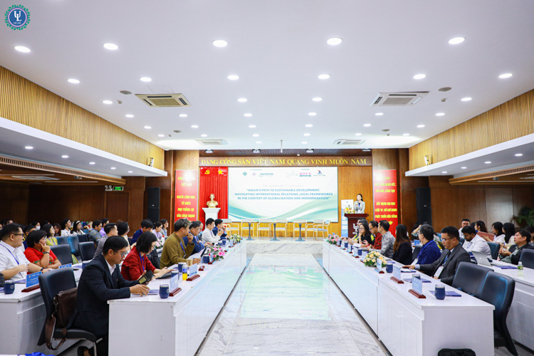 Vào lúc 8h00 ngày 11/07/2025, Trường Đại học Luật TP. HCM đã tổ chức Hội thảo Quốc tế với chủ đề: “Tiến tới phát triển bền vững tại các quốc gia ASEAN: Quan hệ quốc tế, thách thức pháp lý trong bối cảnh toàn cầu hóa và hiện đại hóa” tại cơ sở Nguyễn Tất Thành. Hội thảo được tổ chức nhằm tạo ra một diễn đàn học thuật uy tín, nơi các chuyên gia, giảng viên, nhà nghiên cứu và sinh viên trong và ngoài nước có cơ hội trao đổi, thảo luận các vấn đề cấp thiết liên quan đến phát triển bền vững, đặc biệt là những tác động và thách thức trong khuôn khổ pháp lý và quan hệ quốc tế của khu vực ASEAN trong bối cảnh toàn cầu hóa ngày càng sâu rộng và tiến trình hiện đại hóa đang diễn ra mạnh mẽ.