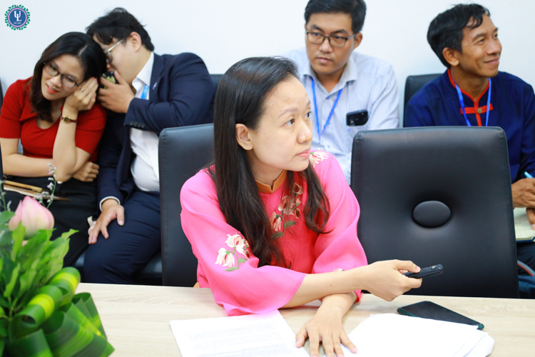 *Trong buổi thảo luận tại phòng A905, cơ sở Nguyễn Tất Thành có sự tham dự của PGS.TS. Trần Thăng Long - Phó Trưởng Khoa Ngoại ngữ Pháp lý cùng các vị diễn giả có bài tham luận trong buổi thảo luận và sinh viên có quan tâm.